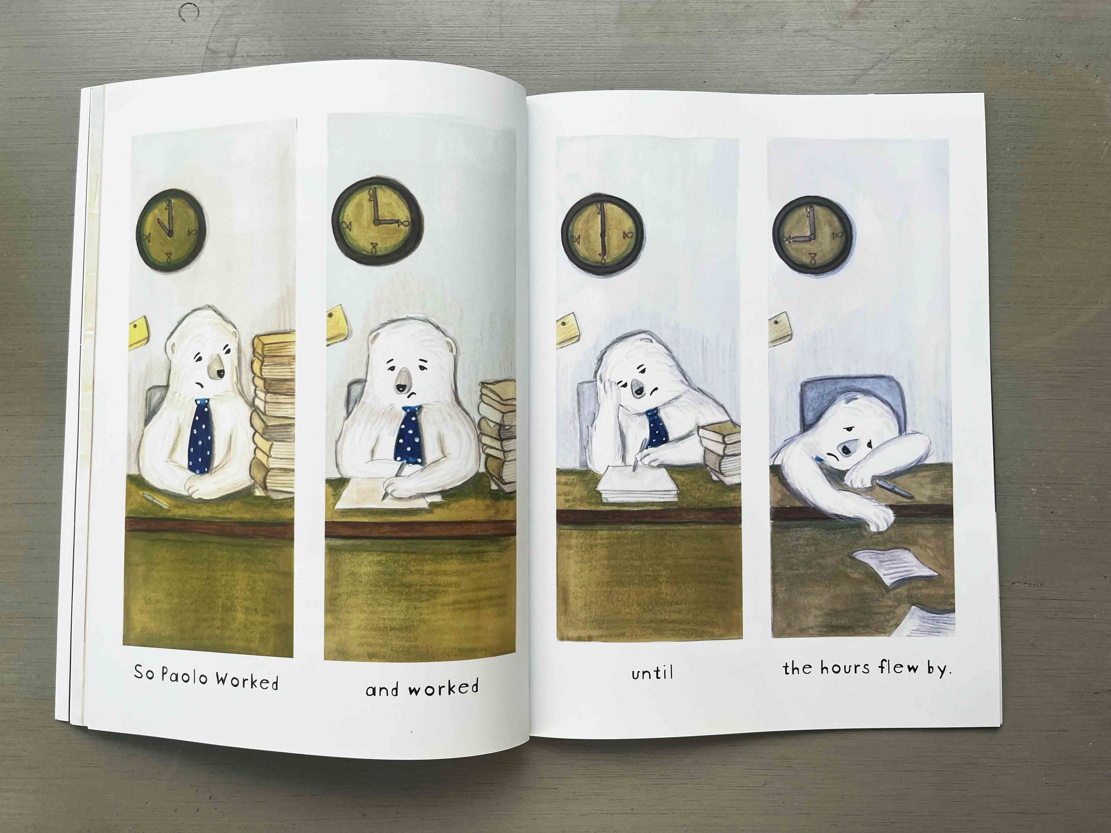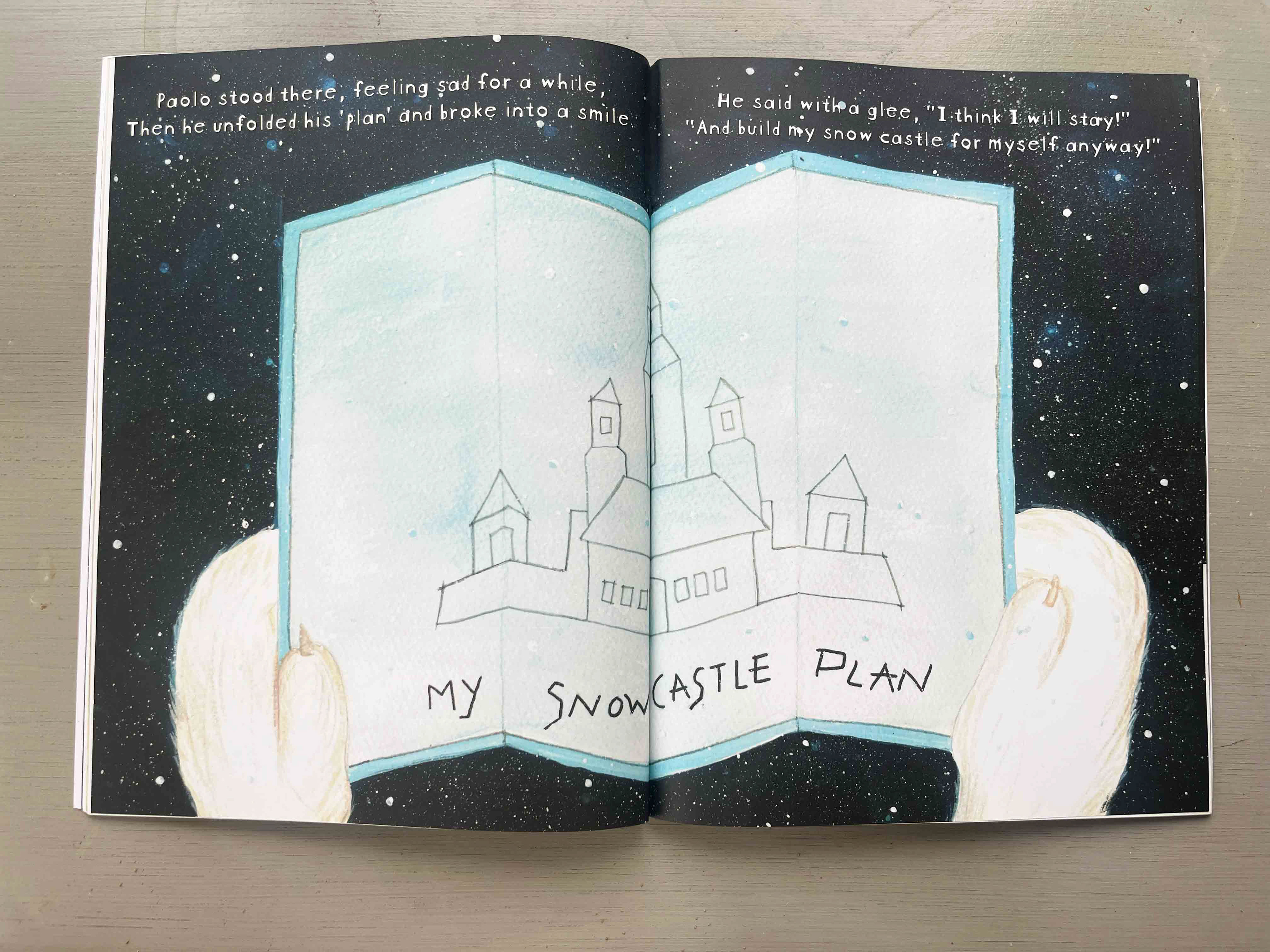 'Paolo the Happy Polar Bear' was my first picture book as an author, illustrator and book designer. It is a zen like fable about a lovable polar bear who works in an office accounting for fish stocks but it is making artful snow castles that he enjoys the most. He enters into a grand competition but faces some challenges on the day, so what does he do when things don't go according to plan? This is a story about choosing joy of creativity. Painted in watercolours, pen and ink the book creates a wonderful connection between the reader and Paolo.